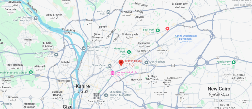 Konum Tarifi:Dar Zobat Al-Moshat – Salah Salem Caddesi üzerinde,Al-Fangari Köprüsü yanında, Kobri Al-Qobba Askerî Hastanesi ve Fathallah Market’in yakınında, Metro istasyonuna yürüyüş mesafesinde.
